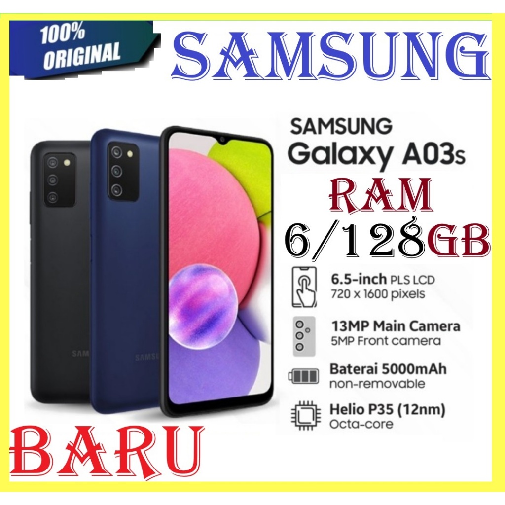 SAMSUNG GALAXY A03s ORI RAM 6/128GB [Triple Camera 13MP+Bterai 5000mAh+Layar 6,5inci] BARU