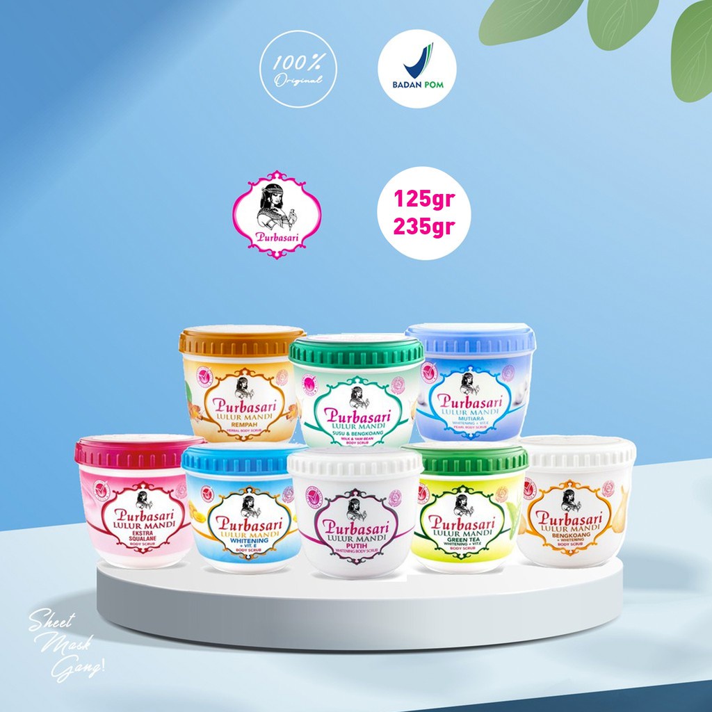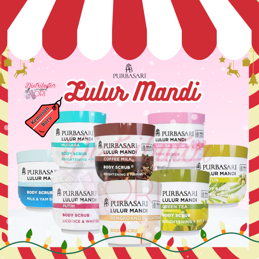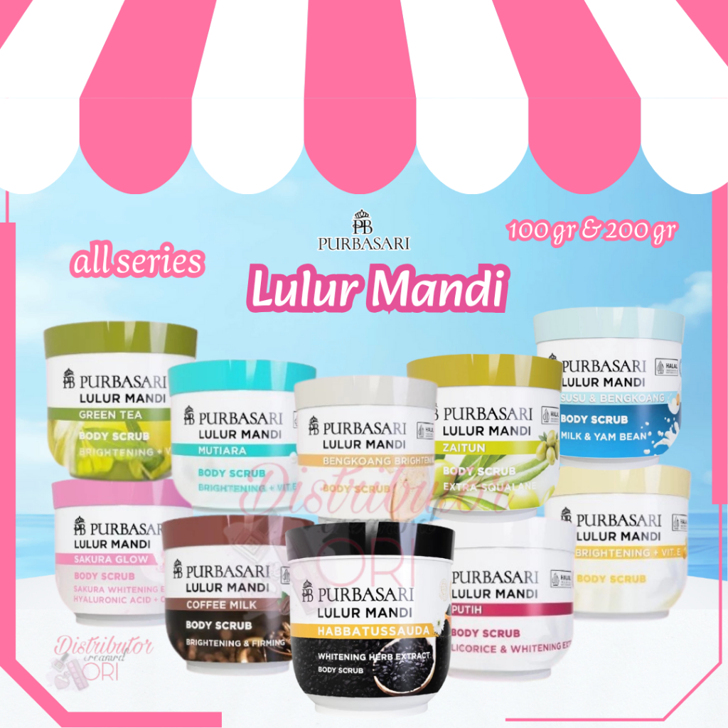 PURBASARI LULUR MANDI 100g / 200gr scrub badan / lulur badan bengkoang putih brightening vitamin susu mutiara green tea