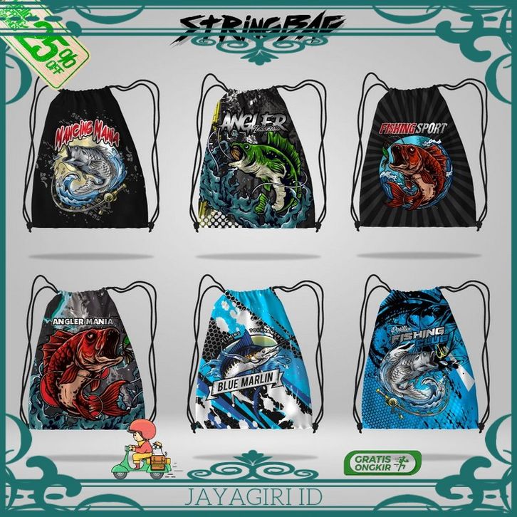 Tas Serut Mancing / String Bag Full Print Motif Fishing