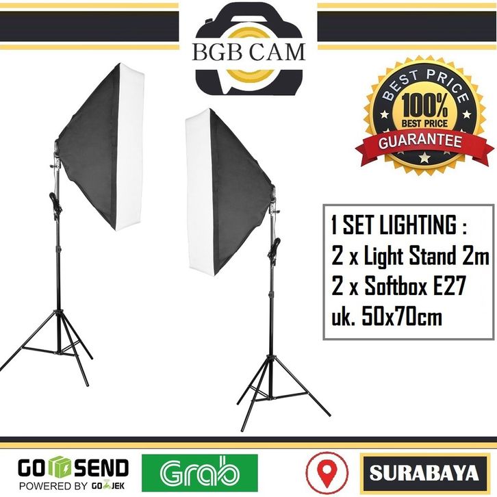 Set Softbox isi 2 Light stand 2 Soft Box e27 Paket Lampu Studio