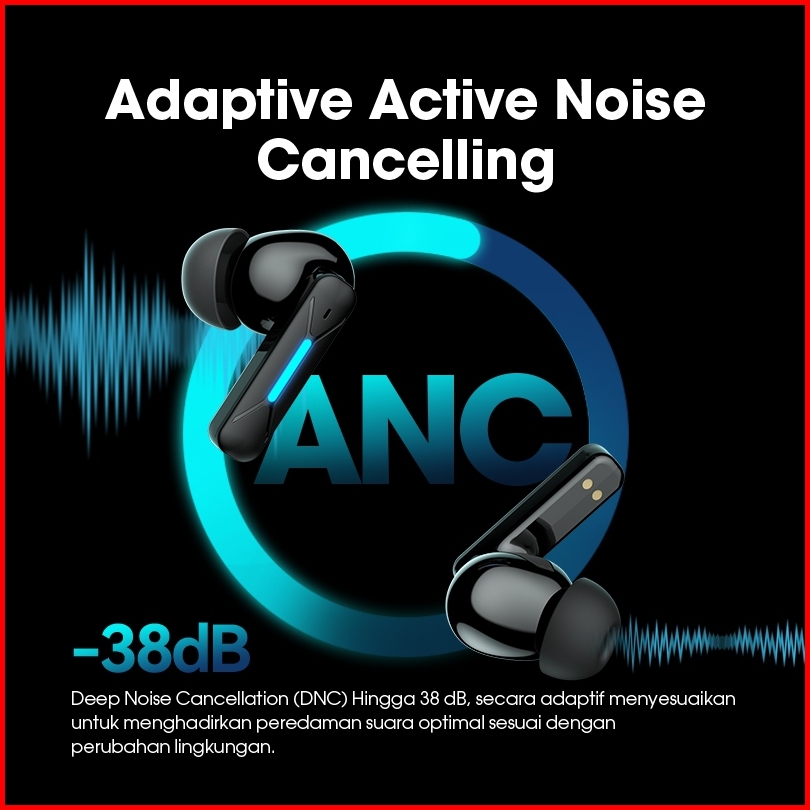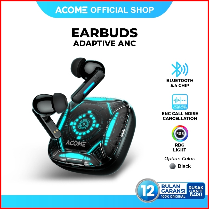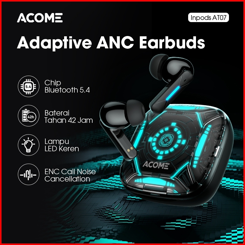 Acome Tws Inpods At07 Headset Earphone Bluetooth 5.4 Rgb Support Gaming Mode Ipx4 Waterproof Deep Noise Cancellation Ori