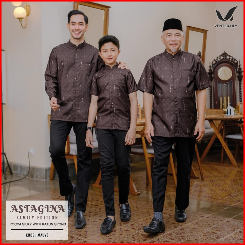 Riva Fashion Baju Sarimbit Keluarga Terbaru Bahan Katun Sutra Silk Premium Motif Viral Koko Panjang