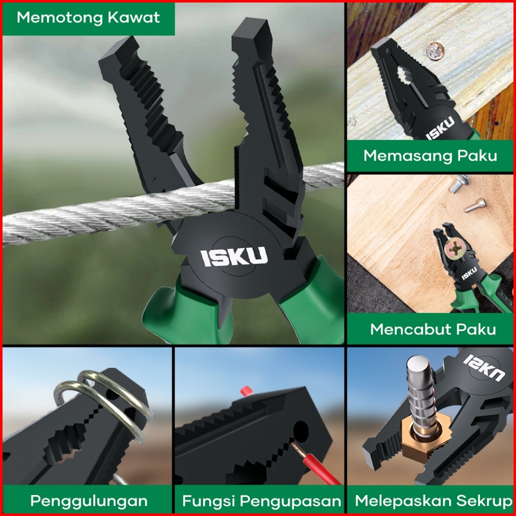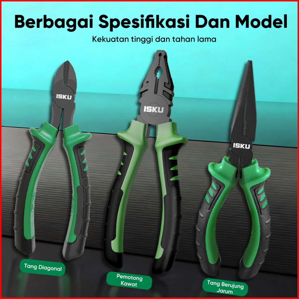 Isku Tang Kombinasi Set 3 Pcs Tang Kawat Tang Lancip Tang Potong Miring 6 8 Inch - Pemotong Kabel Kawat Untuk Bengkel Ho