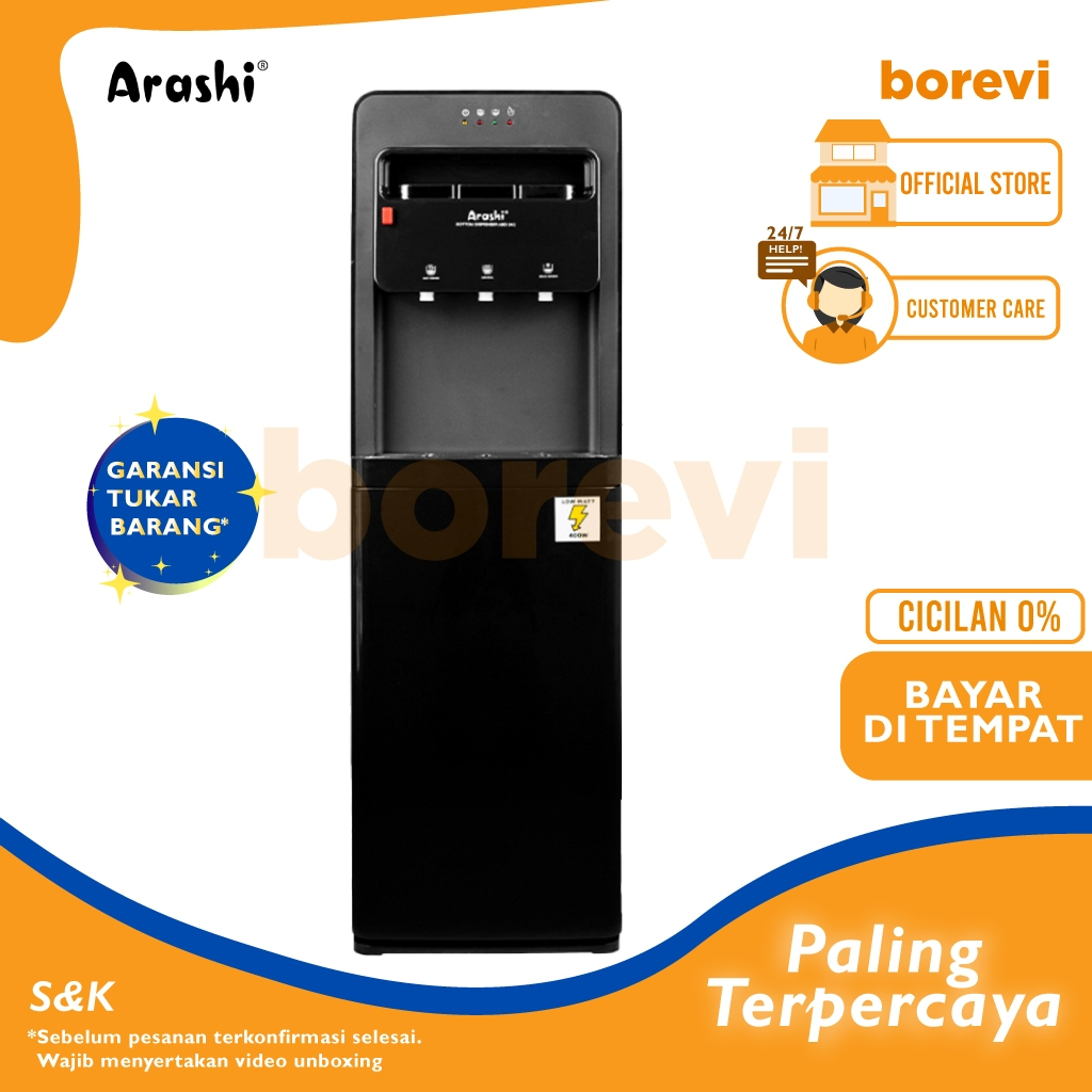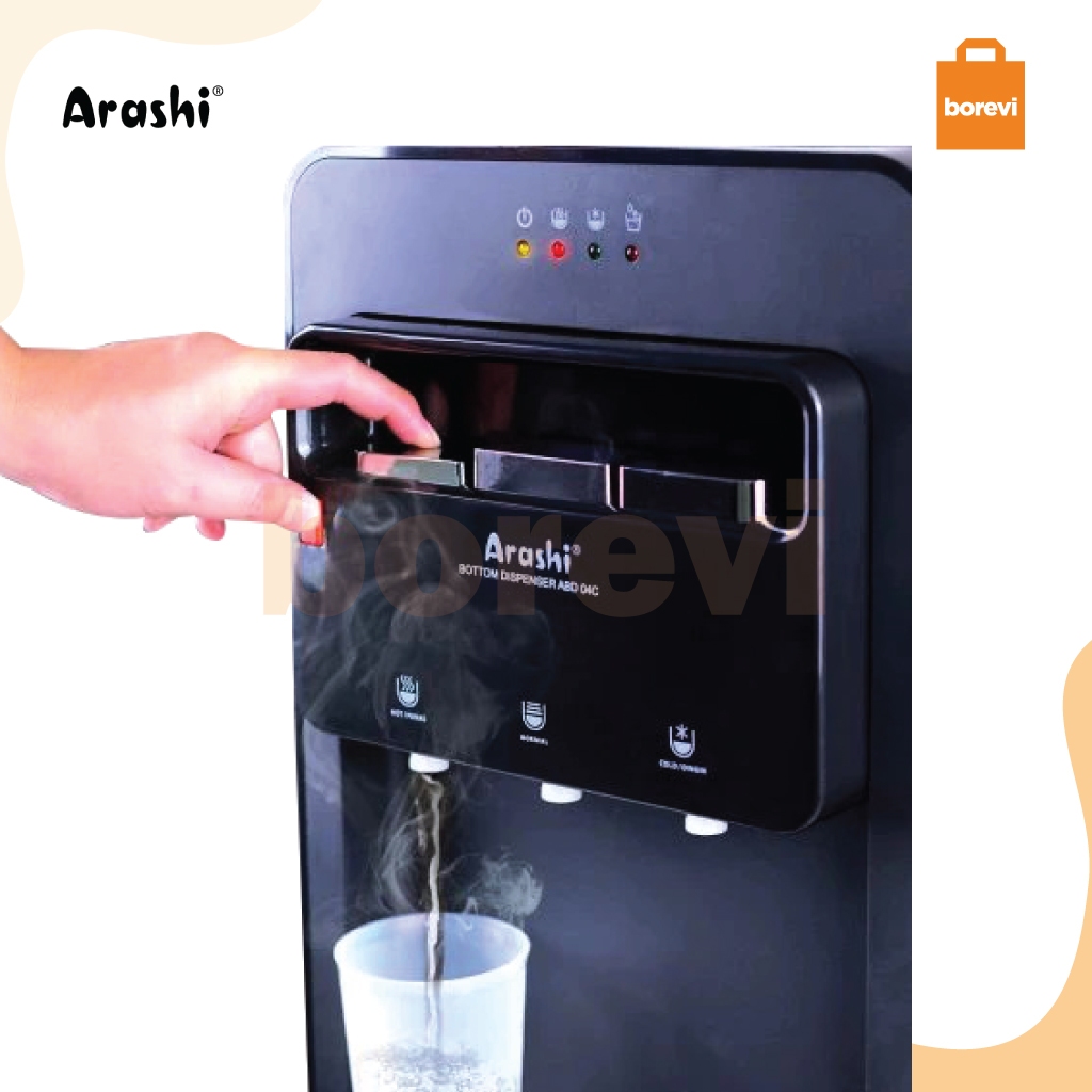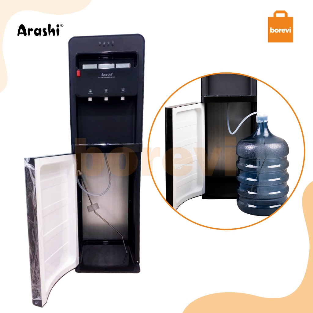 dispenser panas dingin es ARASHI ABD 04C DISPENSER AIR GALON BAWAH HOT COLD BOTTOM LOADING HITAM GARANSI 1 TAHUN