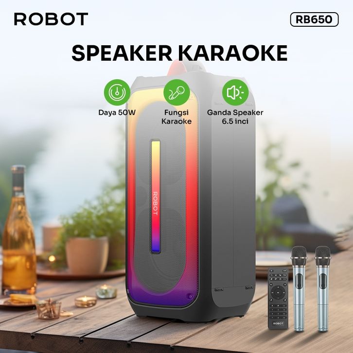 HARGA PROMO ROBOT Speaker Karaoke 50W Dual Microphone Wireless RGB Light speaker bluetooth speaker aktif