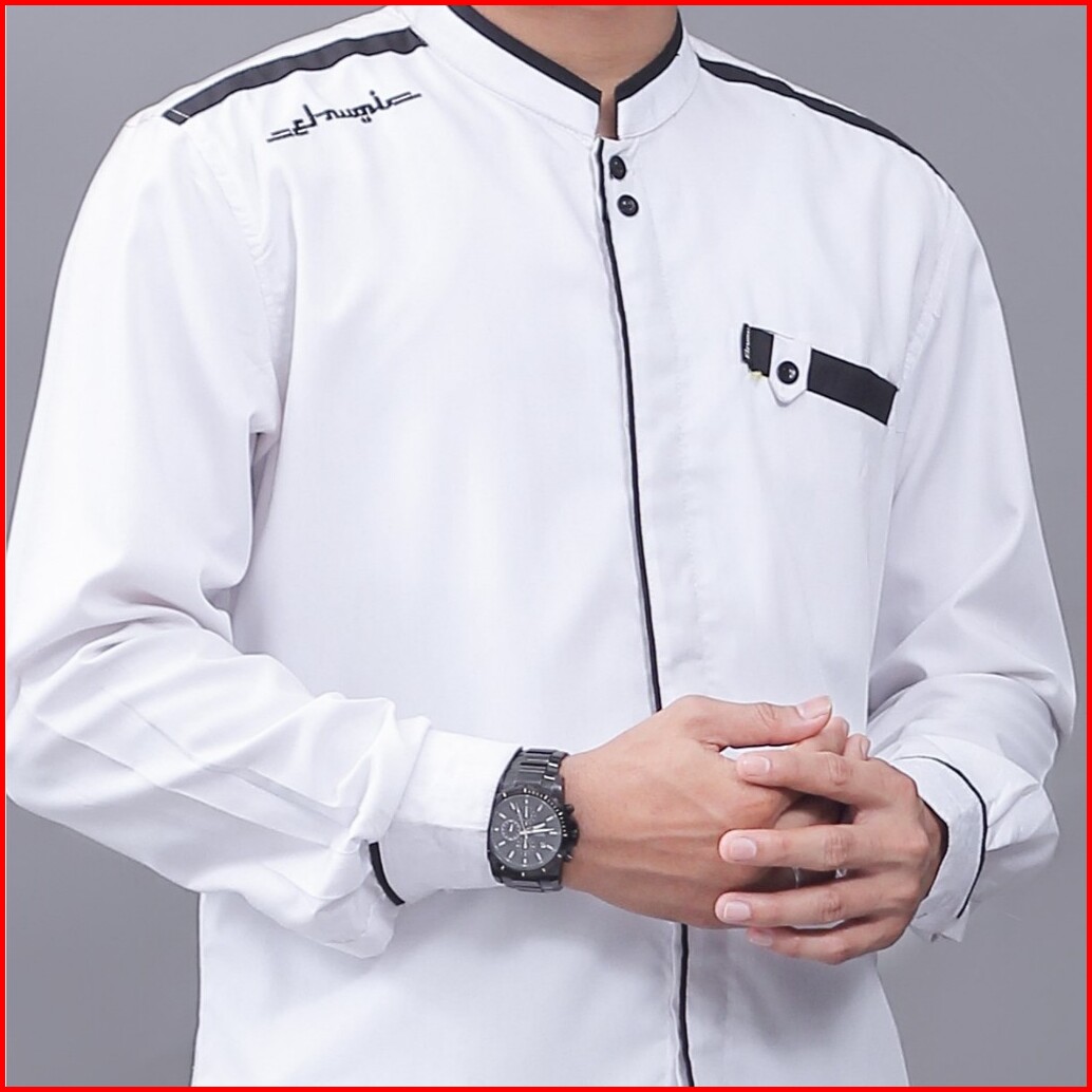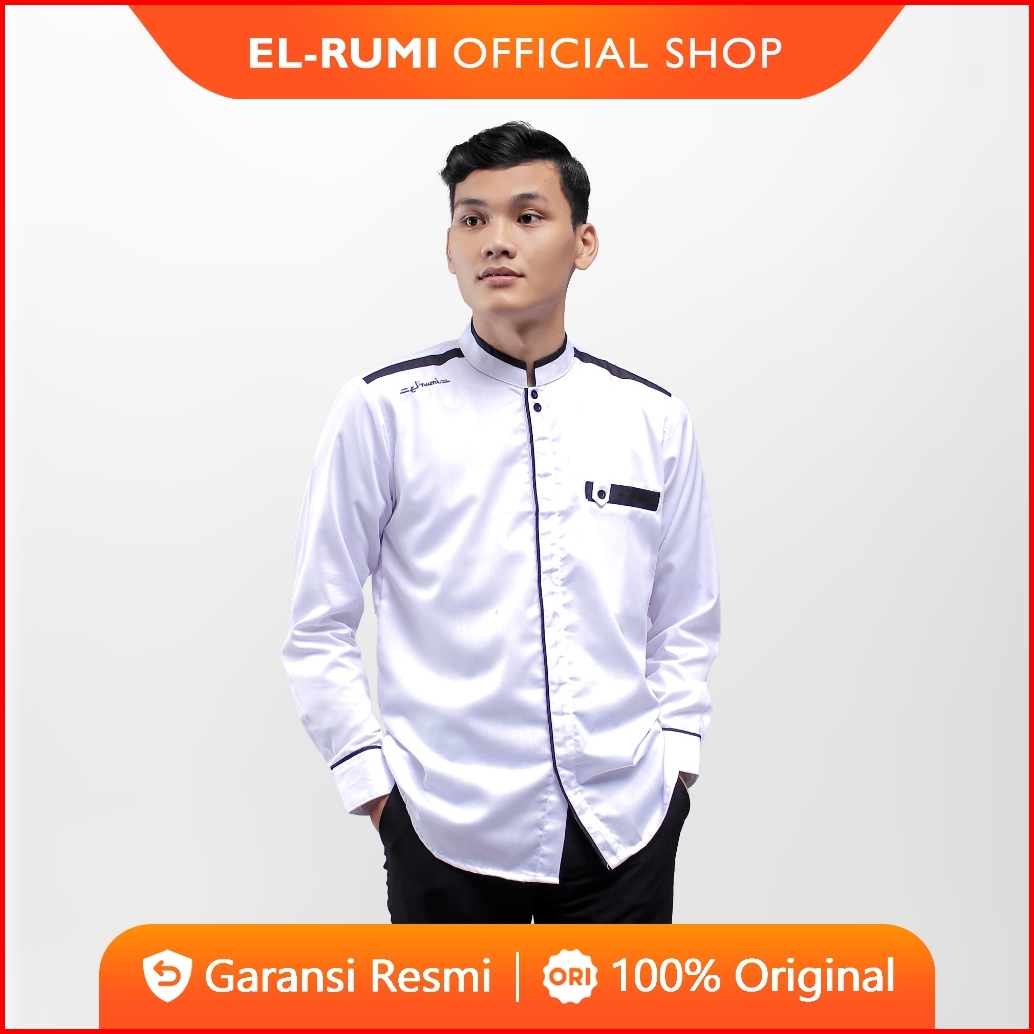 Baju Koko Pria Elrumi Lengan Panjang Motif Yisunsin Warna Putih