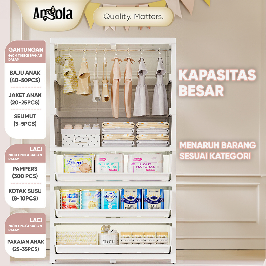 ANGOLA Lemari Plastik Pakaian Kelinci Super Lucu 4 5 Tingkat C80/C96 Lemari Baju Anak Super Gemas