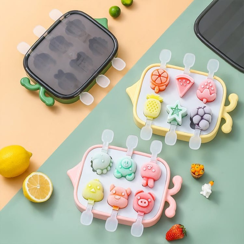 Cetakan es krim 6stik bentuk buah dan karakter dengan tutup ice cream moud 6grid
