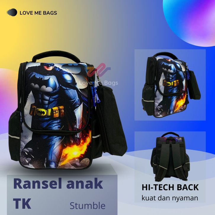 [Mall] LMB Tas Anak Sekolah Laki Laki TK Paud Import Karakter Kartun Lucu Superhero Bahan Nilon Tebal full Busa