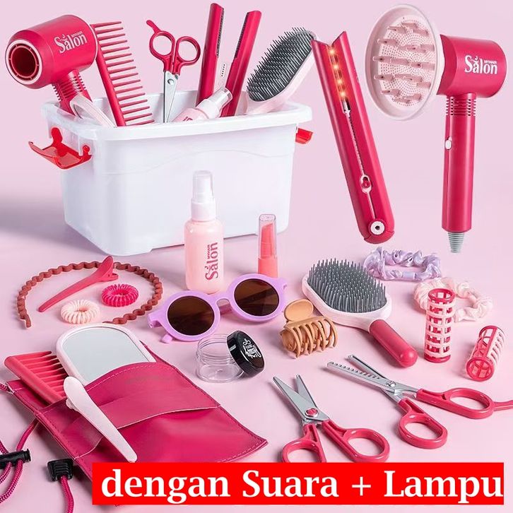 Mainan Anak Perempuan Terbaru Salon-salonan Hair Dryer Nyala Gunting Sisir Makeup Set Kecantikan Lengkap