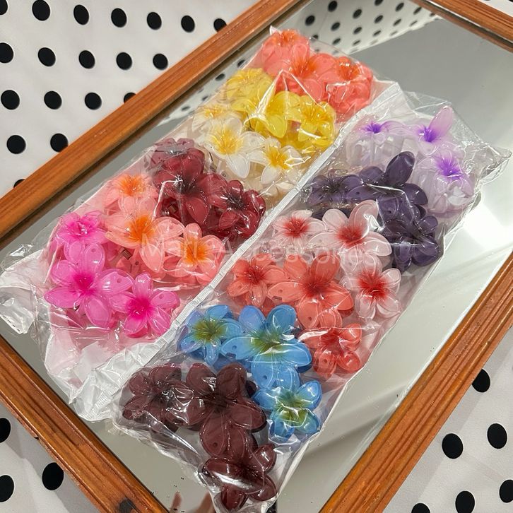 PROMO Jepit Rambut Motif 3 Bunga Kamboja Plumeria Akrilik Glossy | Jedai Salon Rambut Wanita Gaya Korea (12pcs /