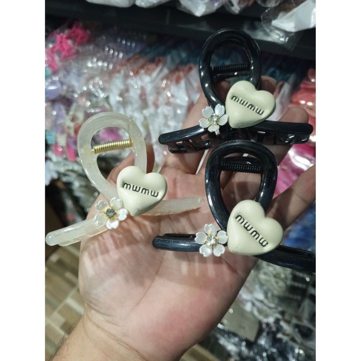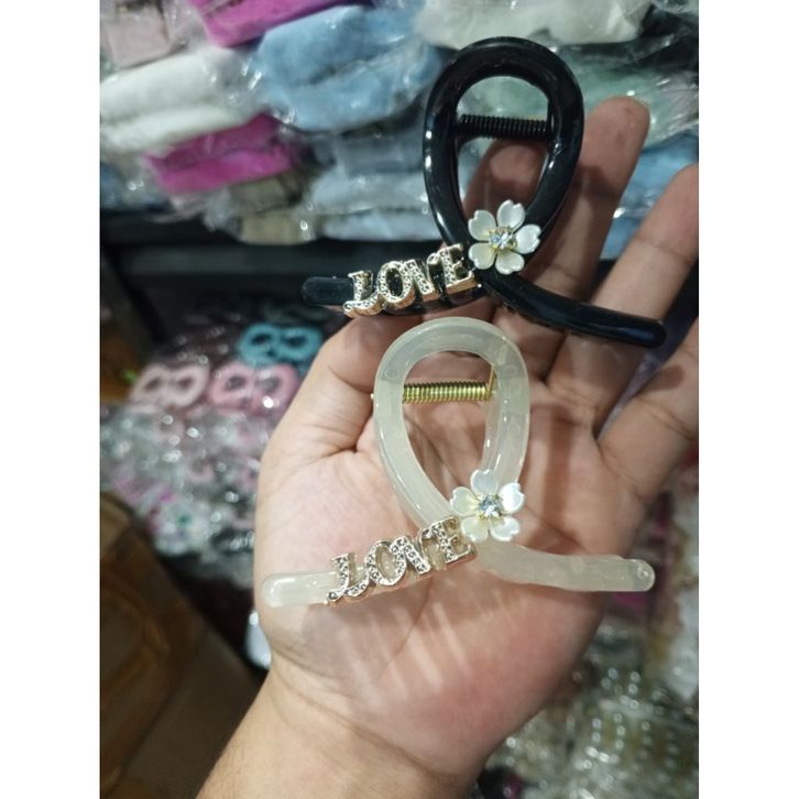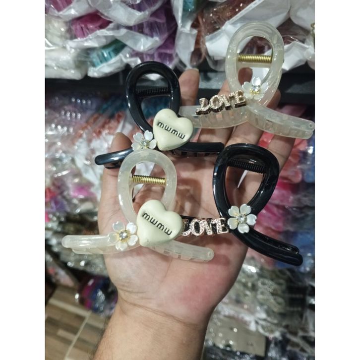 BARU (Isi 12Pcs) Jepitan Rambut Import Korea Model Pita Ulir Motif Love Bening Mix Warna ehokh