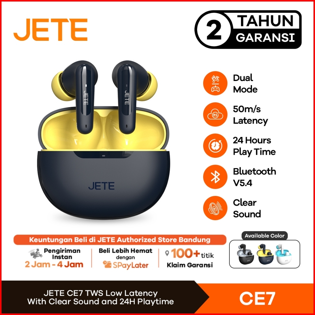 Tws Earphone Bluetooth Jete Ce7 Bt 5.4 24h Playtime Low Latency 50m S- Garansi 2 Tahun