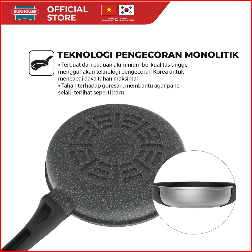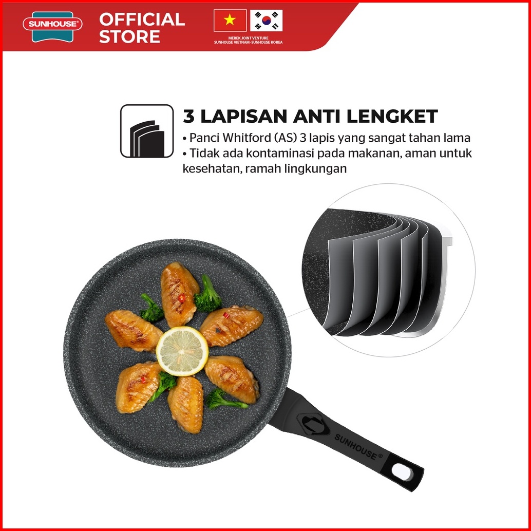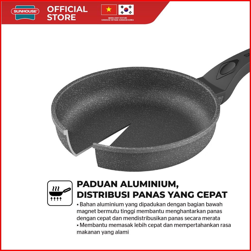 Sunhouse Sbd24 Marble Frypan Anti Lengket Hitam 24 Cm 1 Pcs