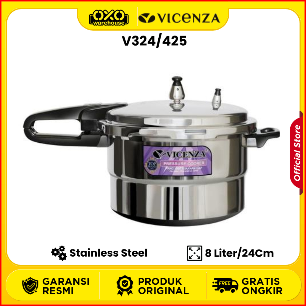 Vicenza Pressure Cooker V324 V424 Panci Presto Kapasitas 8l Stainless Steel Garansi Resmi