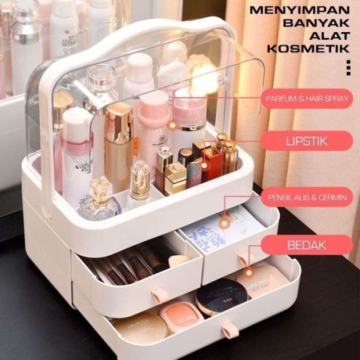 RAK KOSMETIK 3 LACI RAK KOSMETIK FLIP COVER TEMPAT MAKEUP STORAGE - COSMETIC STORAGE