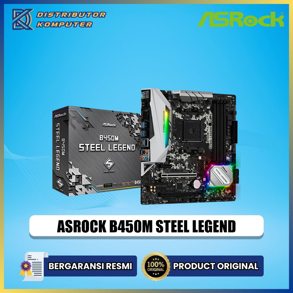 ASROCK Motherboard B450M Steel Legend (AM4, AMD Promontory B450, DDR4, USB3.1, SATA3, Micro-ATX)