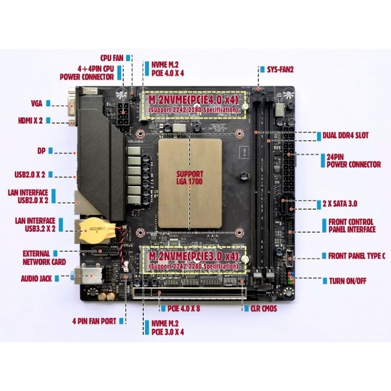 TOPC Motherboard B760 ITX + Intel i7 12 Gen ES (14 Core, 20 Thread)