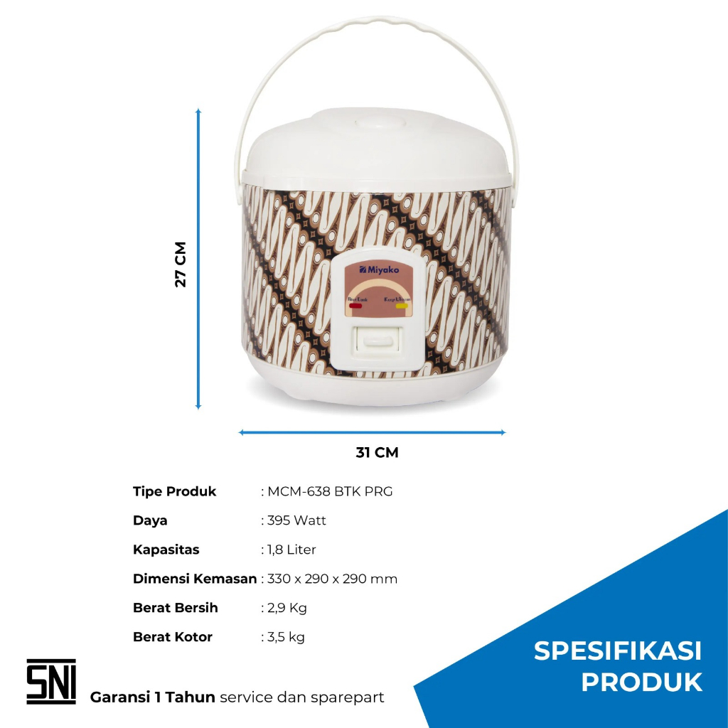 Mejikom Miyako 1.8 liter Anti Lengket Rice Cooker MCM638BTK Magic Warmer Plus l 3 in 1 Official Store