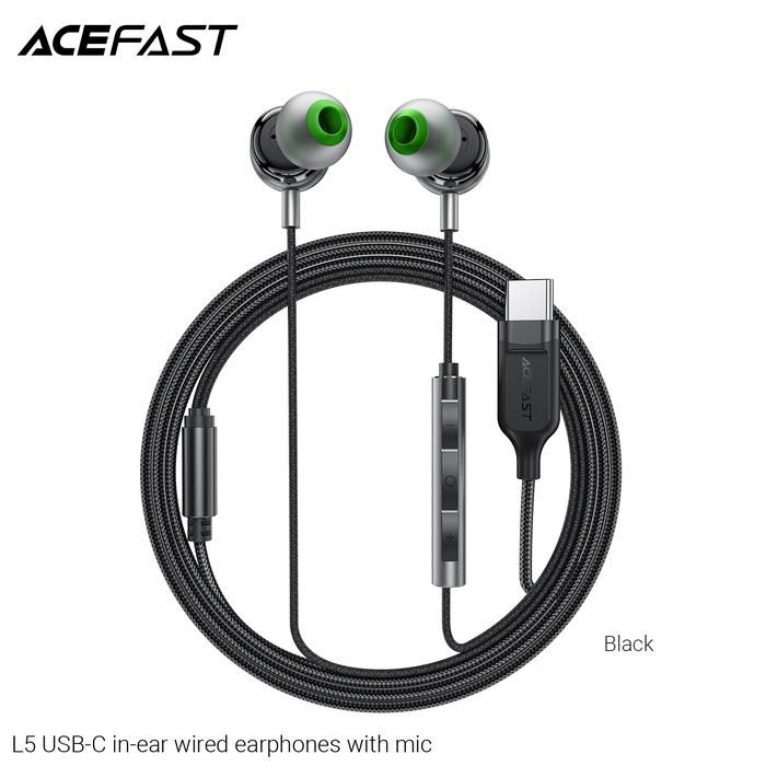 Ergonomic Wired Earphone Headset Cable ACEFAST ACESOUND L5 With Mic Microphone USB-C Cable