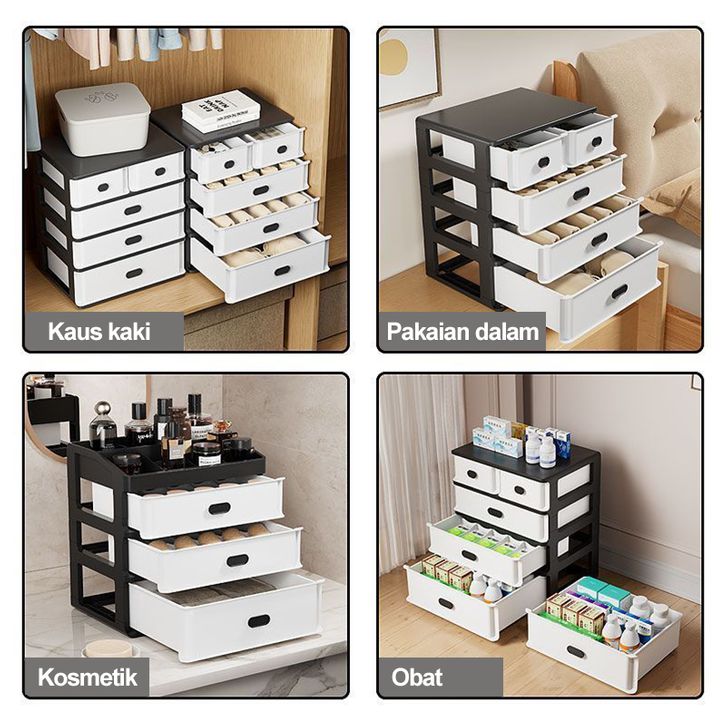 GROSIR Lemari Susun Rak Laci Penyimpanan Baju / Drawer Plastik Kokoh Lemari Kabinet Kamar Serbaguna onakd
