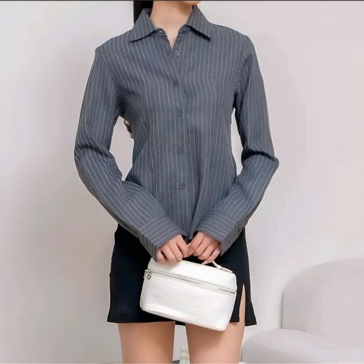 EKSKLUSIF Kemeja Wanita Luna Stripe Fitted Shirt - Atasan Wanita Stripe Salur Kemeja Basic Casual Lengan Panjang