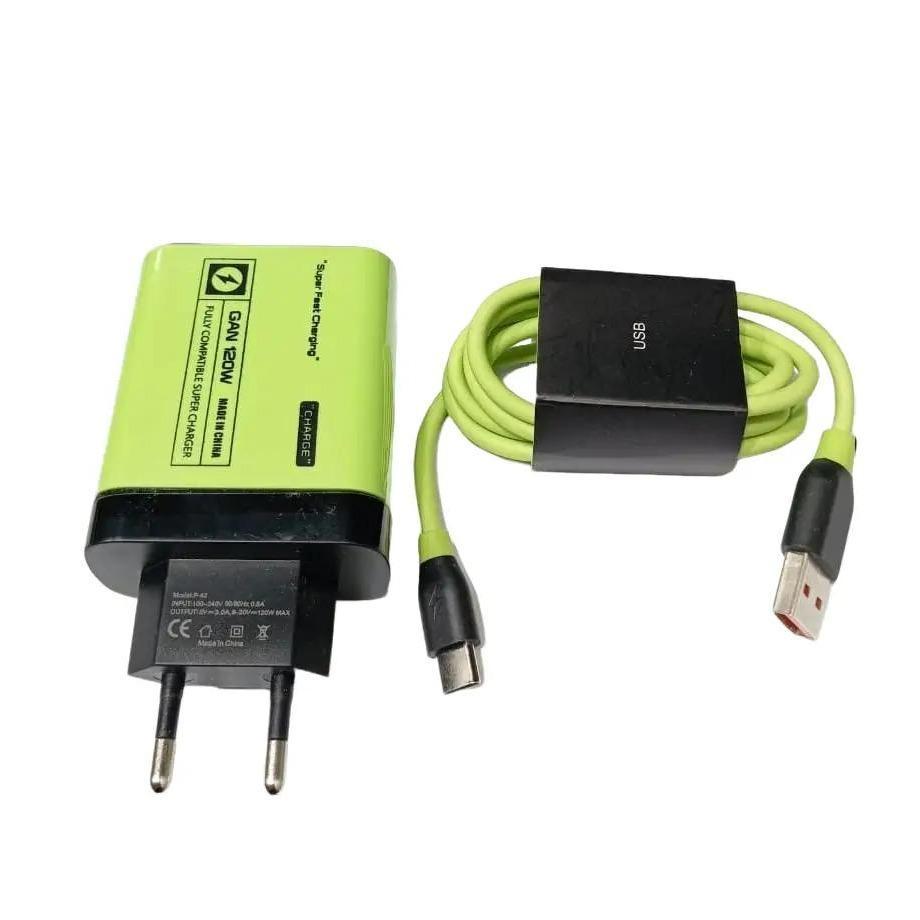 Charger Universal P-43 GAN 120W Super Adapter Suit + Kabel USB MICRO TYPE C Support Fast Charging