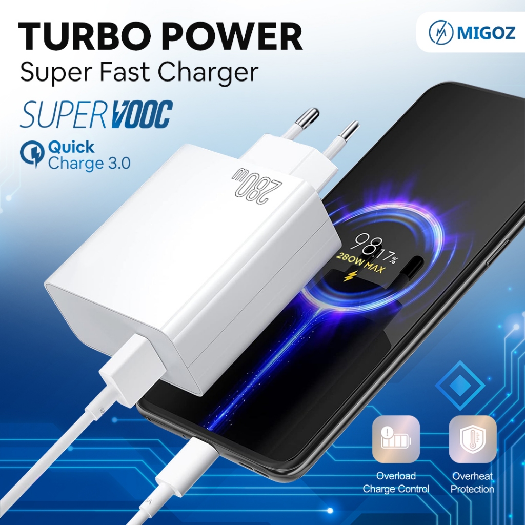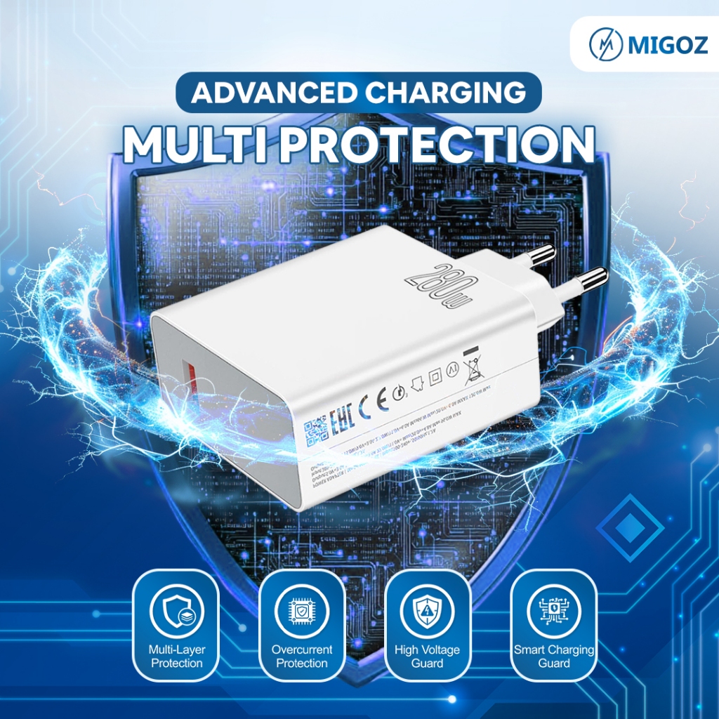 Migoz Charger 280W Fast Charging Micro USB & Type C untuk Semua &