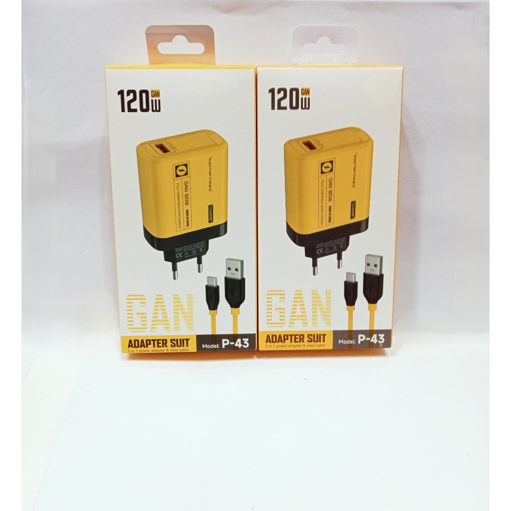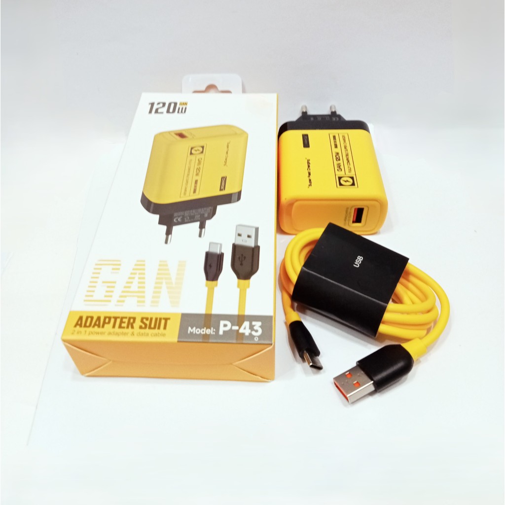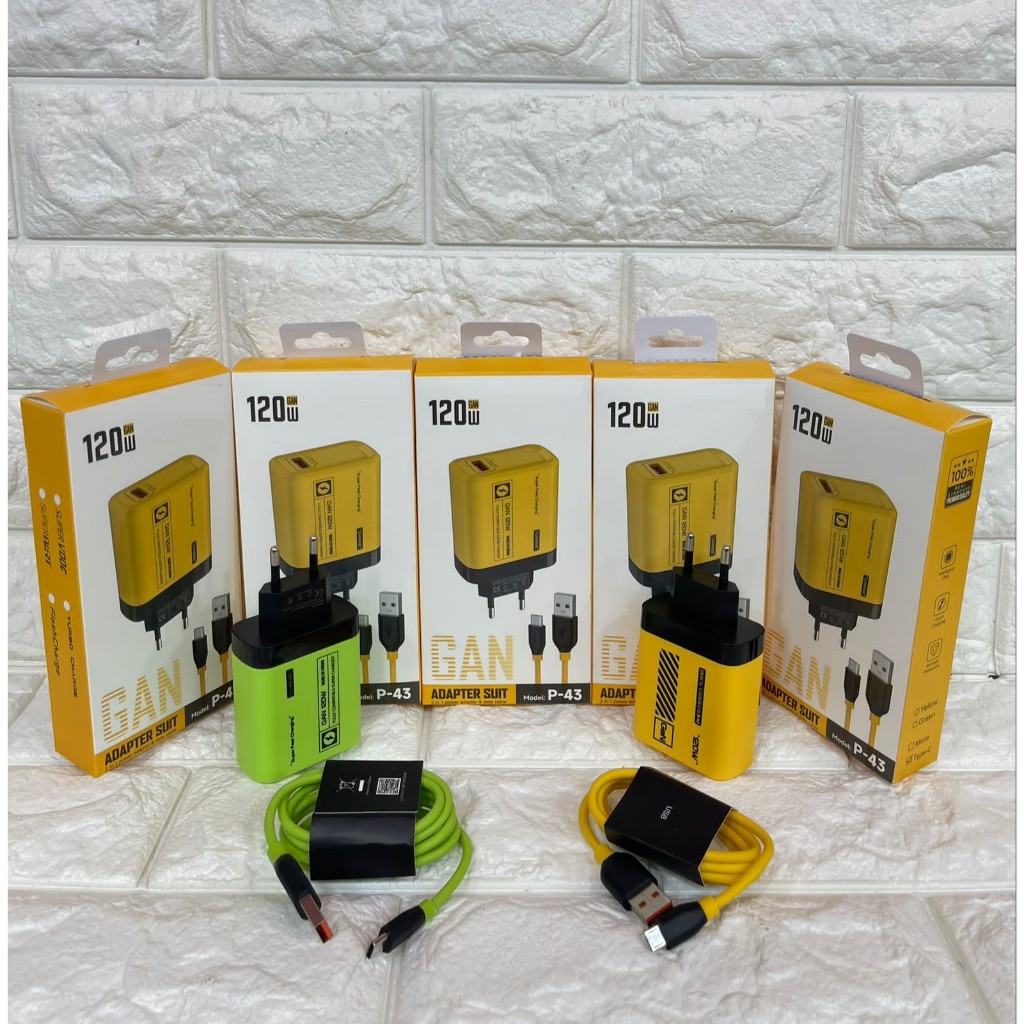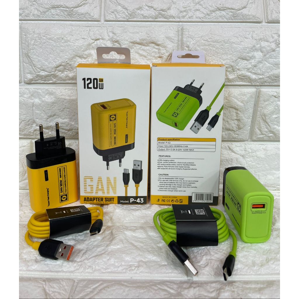 P43 GAN Charger Universal For 120W Super Fast Charging Adapter Suit Batok+Kabel USB Charge
