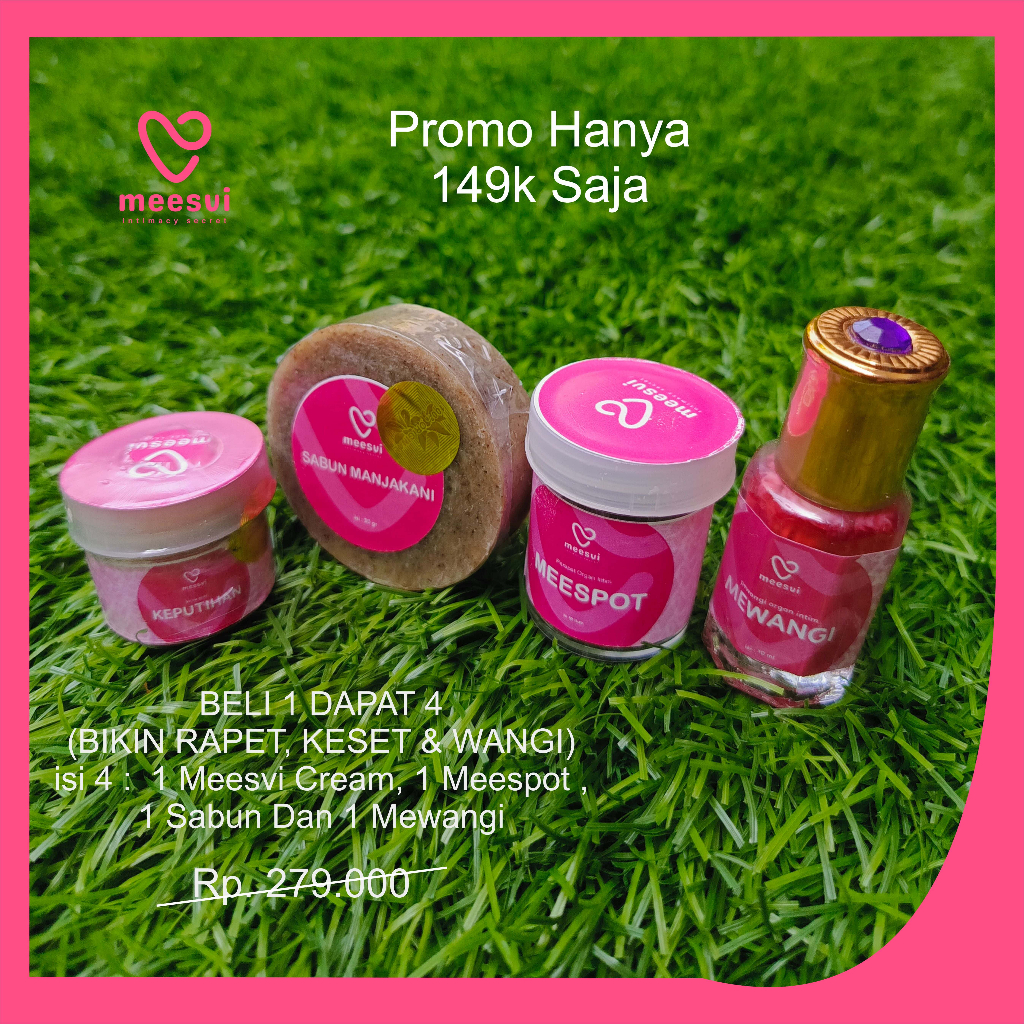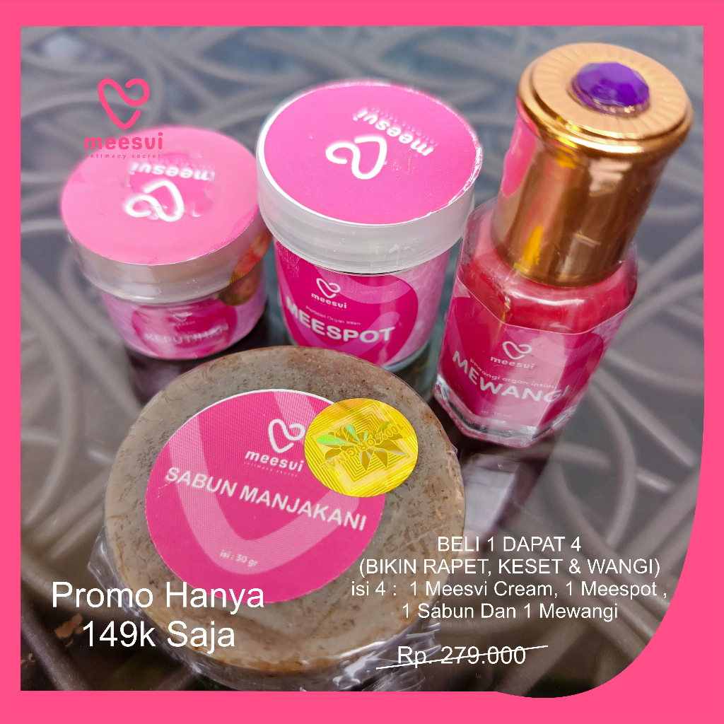Meesvi 4 In 1 Ramuan Khusus Buat Area Kewanitaan Paket 3 ( 1 Cream, 1 Pil Meespot, 1 Meesvi Manjakani Shoap, 1 Mewangi)