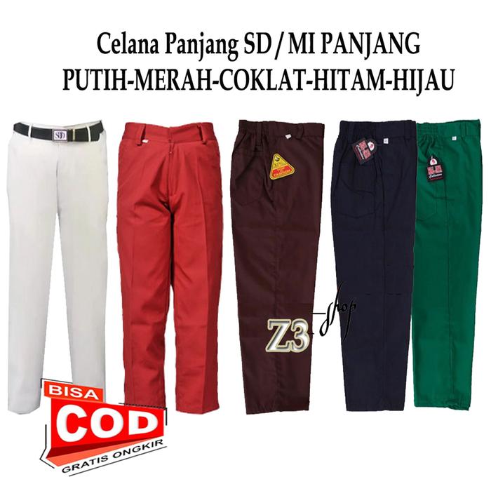 Celana panjang sekolah SD / MI merah Putih Coklat Hijau Hitam Kelas 1-6 Fashion - Putih 6 tahun