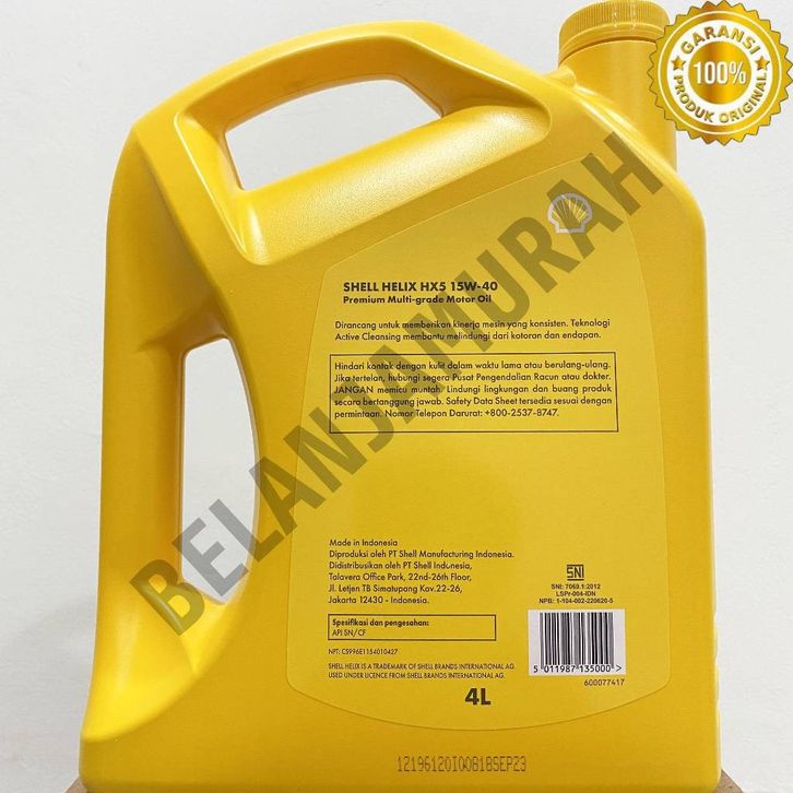 Oli Shell Helix HX5 SAE 15w-40 Galon / 4 Liter 100 ASLI