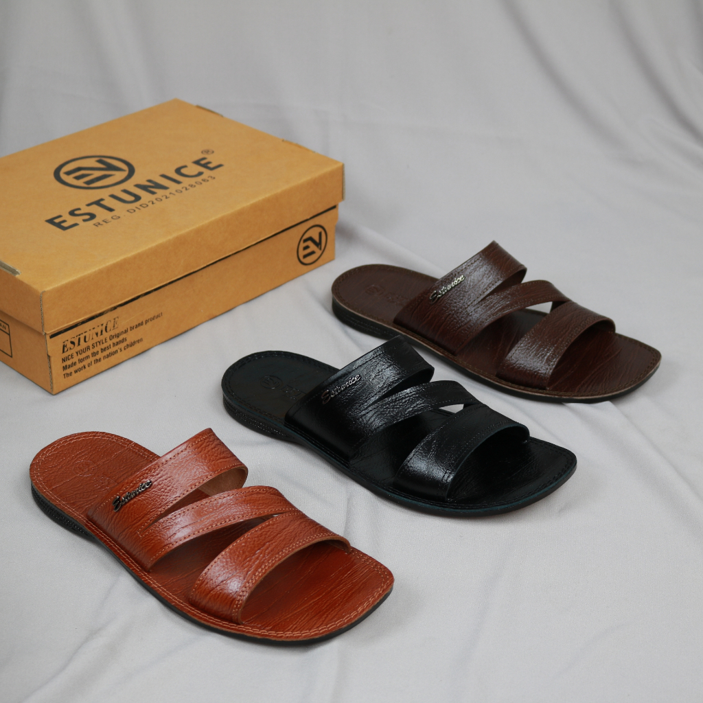 SANDAL KULIT PRIA ORIGINAL ESTUNICE 100% SANDAL KULIT COWOK SLOP SELOP SANDAL KULIT PRIA DEWASA - ES 03