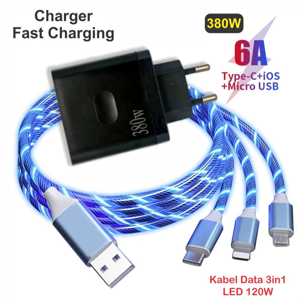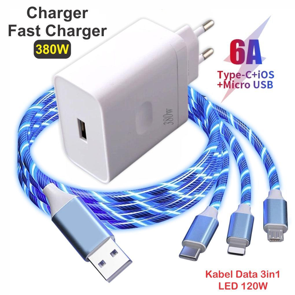 Charger 380W Batok 8 + Kabel Data 3in1 120W Fast Charging / Pengisian Daya Cepat 6A Super Quick Charging