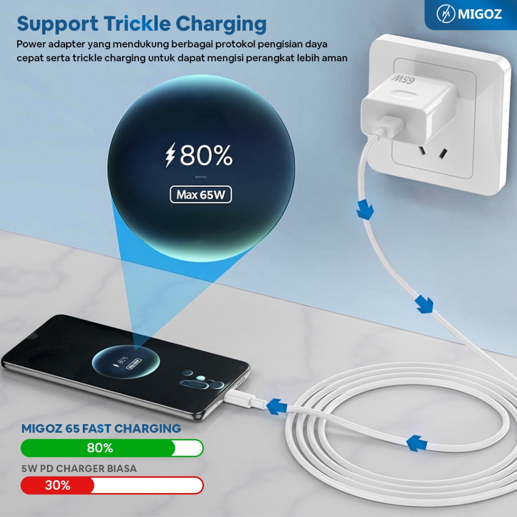 Migoz DeskPower Bundle – Charger 65W Fast Charging + Phone Holder Metal / Tablet