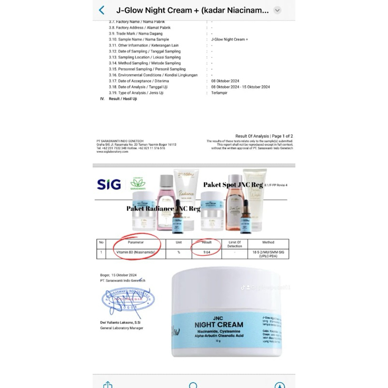 Jglow Skincare paket Radiance Whitening cream malam jnc - 5pcs