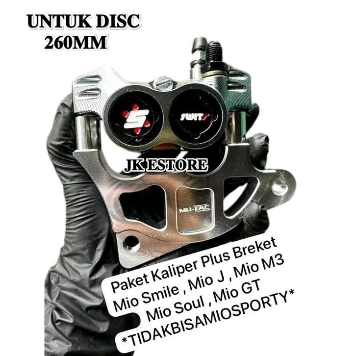 Paket Kaliper Formula Swits 4 Piston Bahan CNC + Breket Mio Smile, Mio Soul, Mio GT, Mio M3, Mio J, Xeon, Jupiter MX ol
