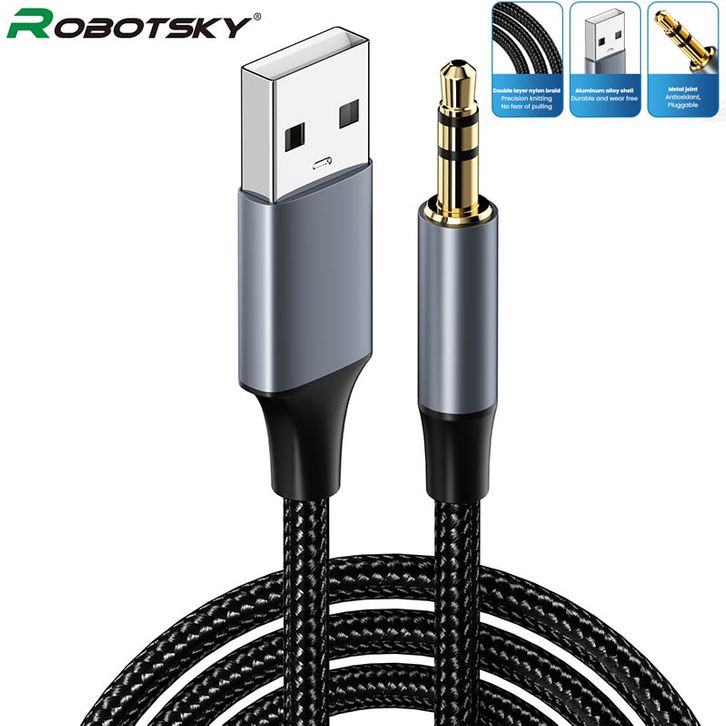 Robotsky USB Male to 3.5mm Jack Male Audio Adapter Cable 100cm 200cm - Converter Music Original Speaker