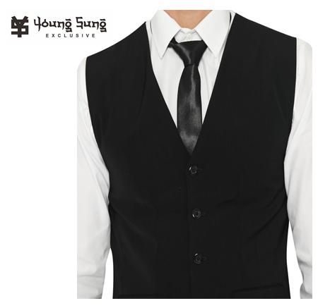Youngsung - Setelan Jas Pria Hitam 5in1 Celana Rompi Kemeja Putih Dasi Formal Wisuda Kantor Casual