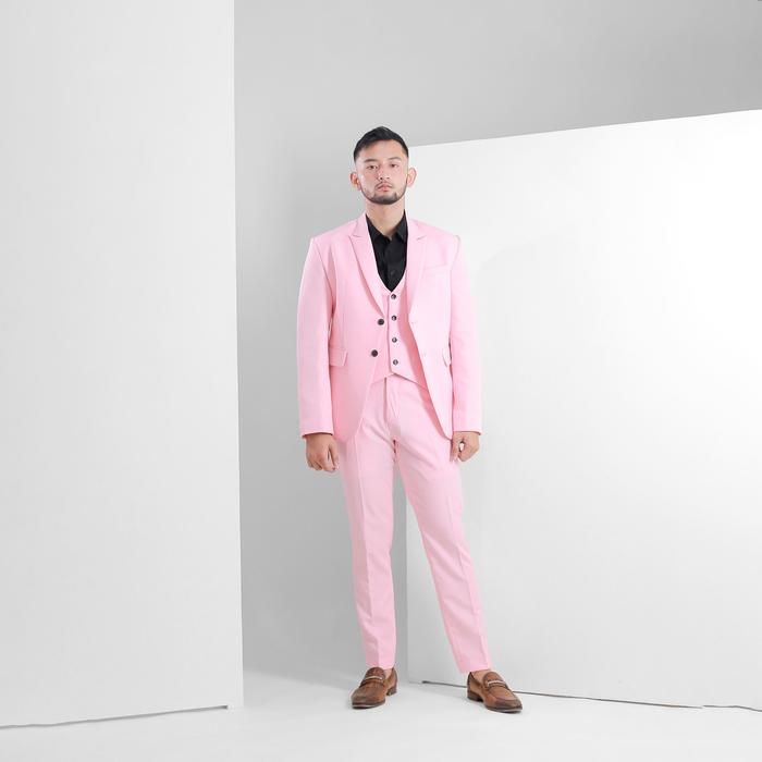 Goldy Outfit Setelan Jas Celana & Rompi Pink - Vente Series