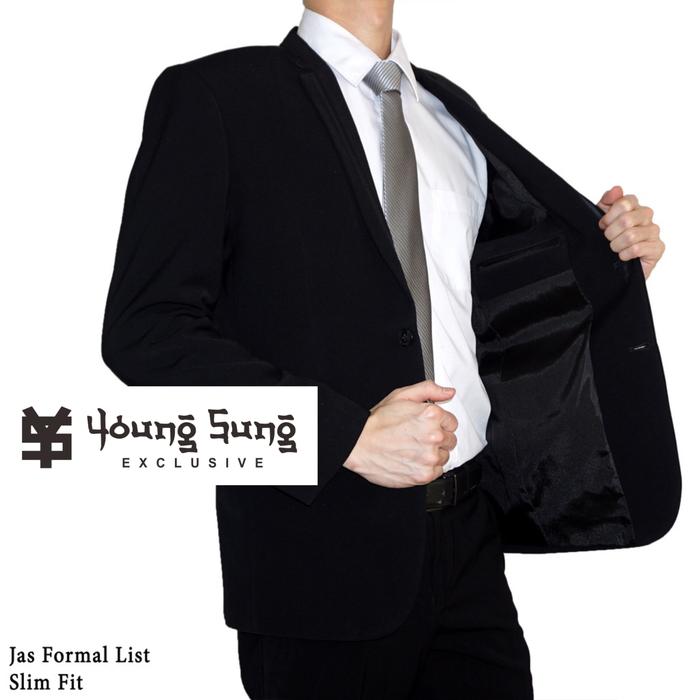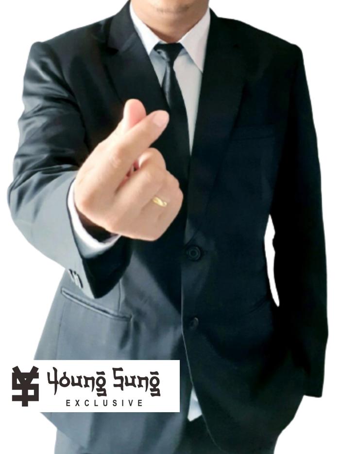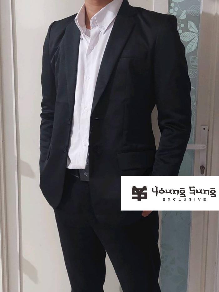 Youngsung Exclusive - Setelan Jas Pria Hitam Slim Fit 4in1 Jas Blazer Kemeja Putih Celana Bahan Formal Dasi