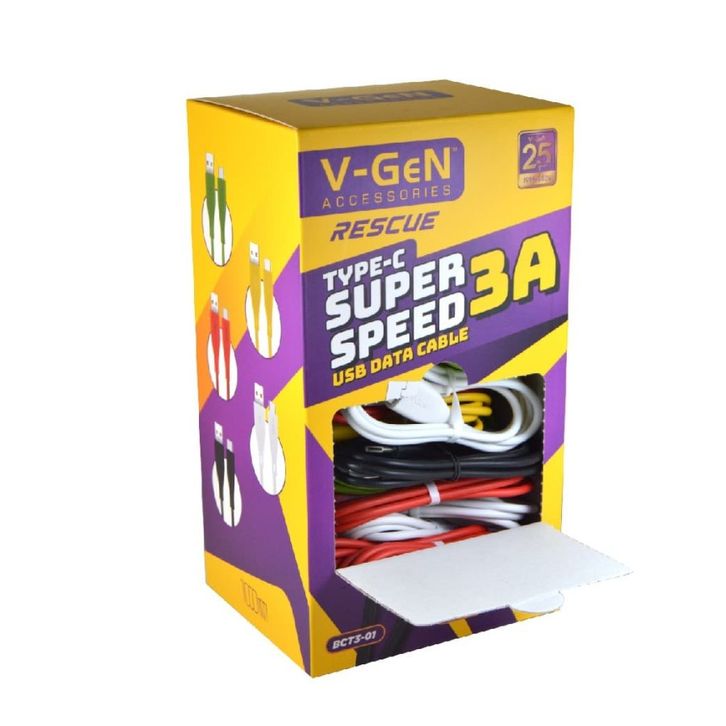 Kabel Data Fast Charging USB Type C V-GeN BCT3-01 3A 1 Box isi 30pcs