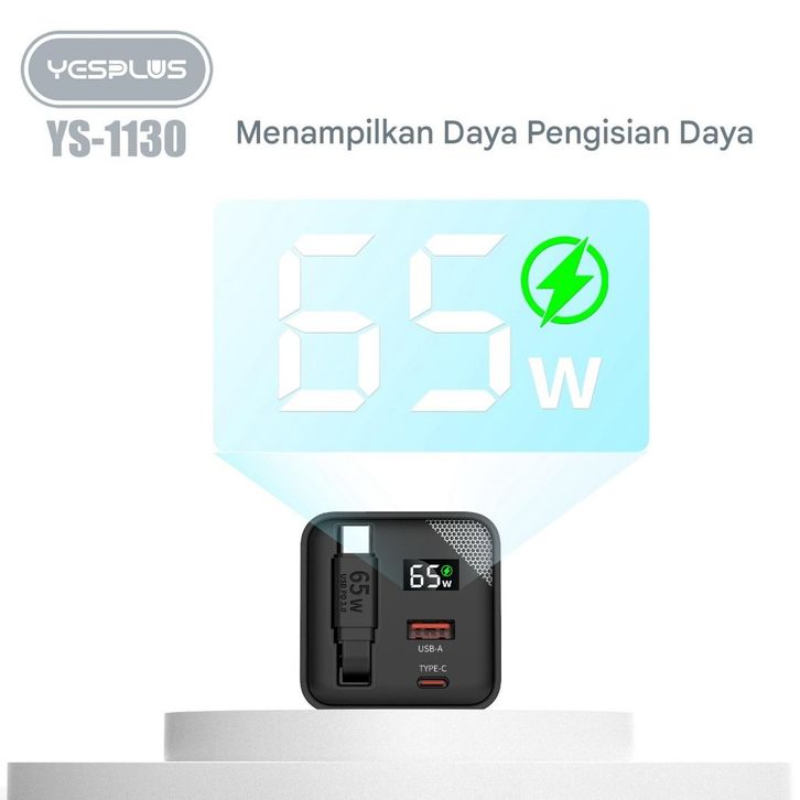 Charger Gan YESPLUS YS-1130 PD 65W Kabel Type-C 80CM + Charger Super Fast Charging