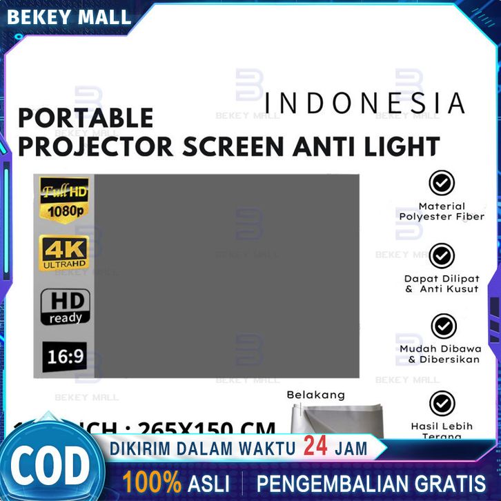 TERLAKU Layar Proyektor Anti Light 120 Inch Ratio 16:9 | Screen Projector 4K Anti Light | Kain Layar 60 - 70 - 80