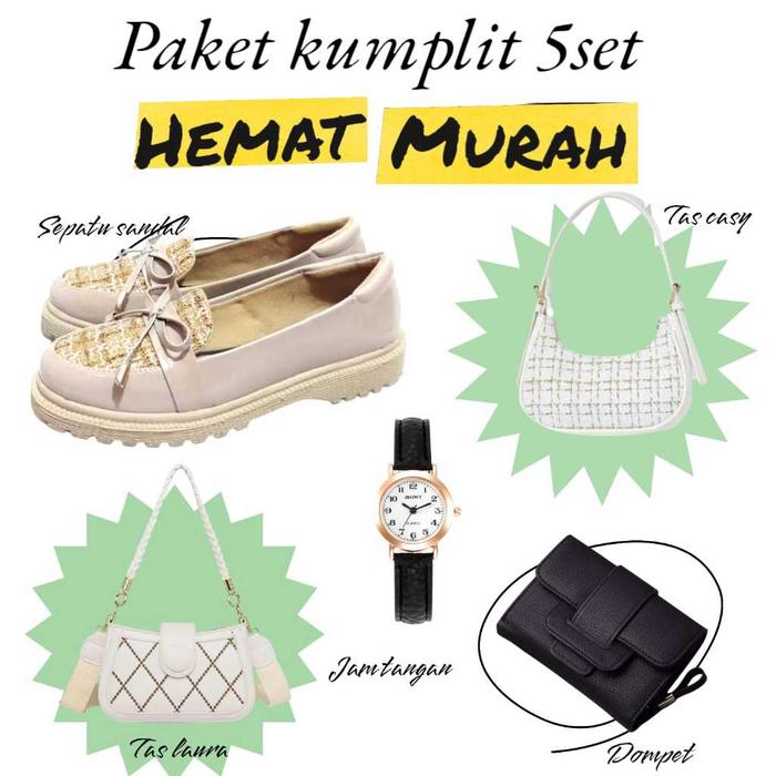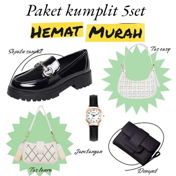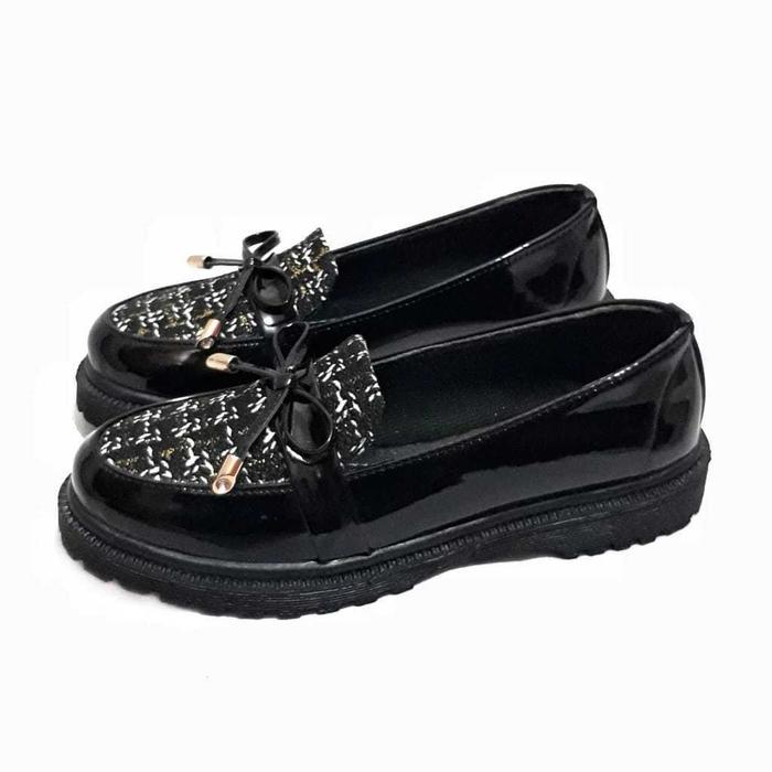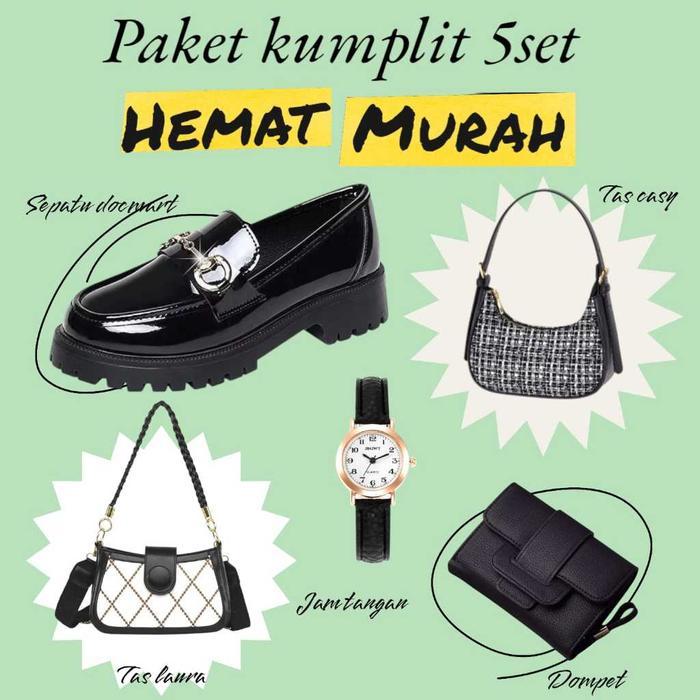 Paket kumplit hemat 5 set sepatu docmart loafers wanita/jam/tas/dompet Hitam - jeje hitam+dompet hitam+casy hitam 37