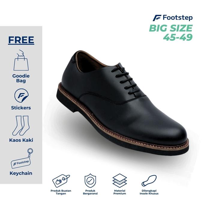 Sepatu Pantofel Pria Big Size Jumbo Footstep Footwear - Wirken Oxford Black Shoes Kerja Hitam - 45