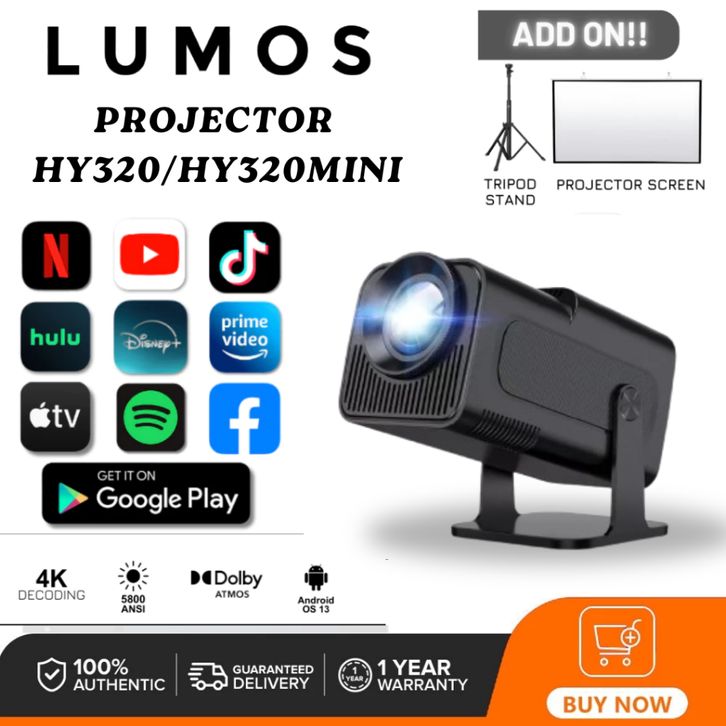 TERLARIS Proyektor HY320 Android 11.0 WiFi6 Bluetooth5 Proyektor Mini 10000 Lumens HDMI 4K 1080P Native Projector