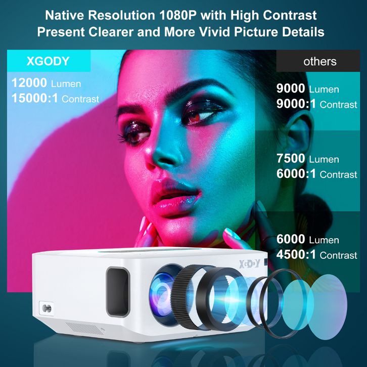 TERLARIS XGODY X1 Smart Proyektor LCD -Android 9 - FHD 1080P -Dolby Atmos -2GB+16GB -Auto Keystone - 460 ANSI
