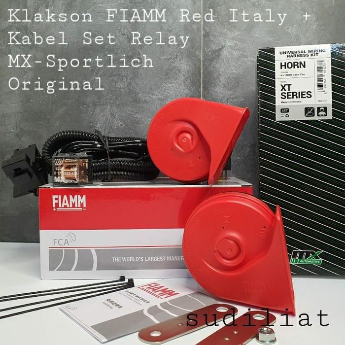 KLAKSON FIAMM RED ITALY + KABEL SET RELAY MX-SPORTLICH MOBIL/MOTOR ORI