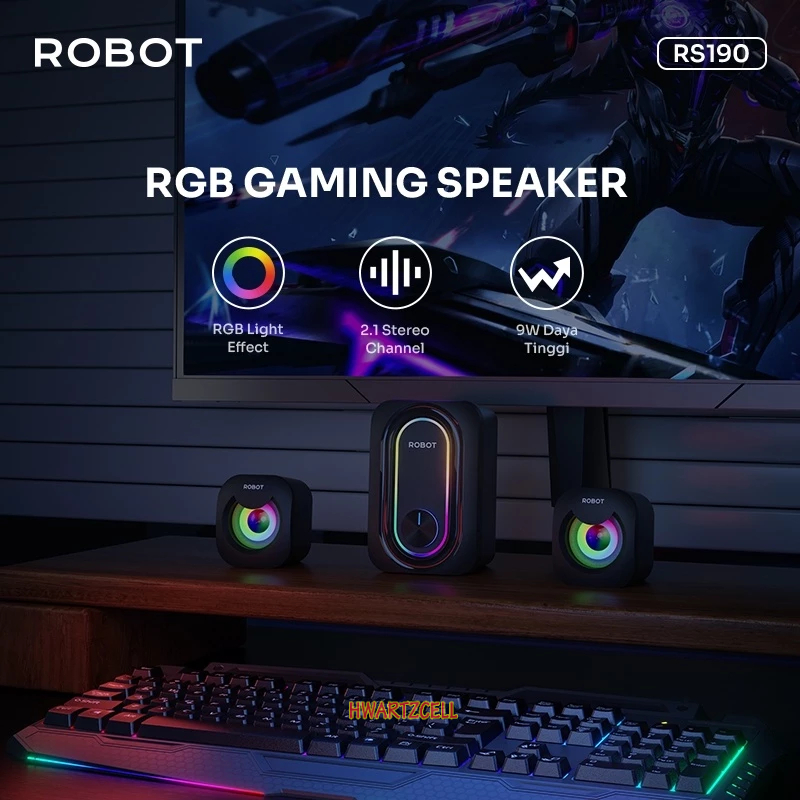 Speaker ROBOT RS190 Laptop/PC/Gaming Soundbar Super Bass Portable RGB Lighting - Garansi 1 Tahun